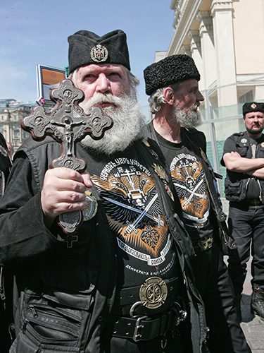 Первые пришли хоругвеносцы и религиозные противники проведения гей-парада. Симонович-Никшич благословляет на борьбу. Фото: Савельев Алексей