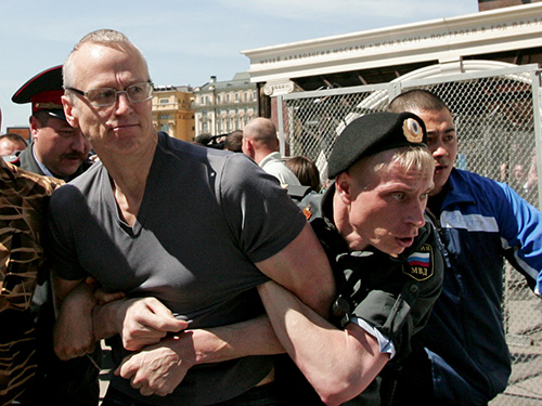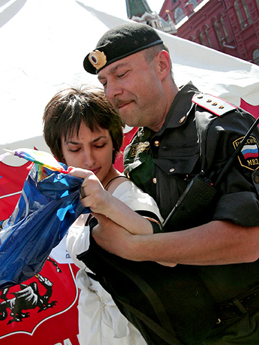 Вот эта Лена Костюченко. Обратите внимание, как нежно обращается с ней ОМОН. Может, мужики не такие уж противные?. Фото: Савельев Алексей