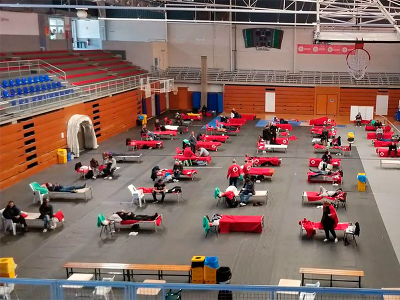 Портал newsru.com широко распространил фотографии ледового дворца в Мадриде, арена которого завалена трупами. Только если вглядеться в это фото, становится ясно, что на лежаках валяются волонтеры и другой персонал, которые играют в игры на своих сматфонах.