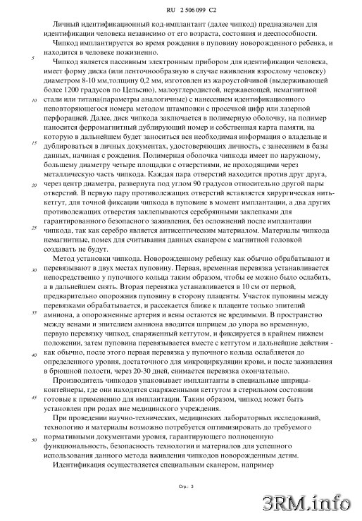 При проведении научно-технических, медицинских лабораторных исследований, технологию и материалы возможно потребуется оптимизировать до требуемого нормативными документами уровня, гарантирующего полноценную функциональность, безопасность технологии и материалов для успешного использования данного метода вживления чипкодов новорожденным детям.